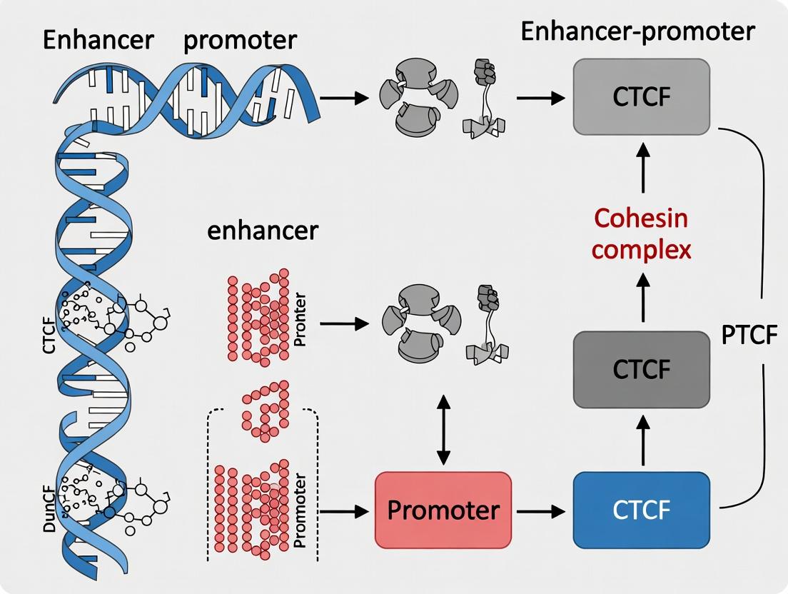 Within the framework of enhancer-promoter insulation research, the partnership between CCCTC-binding factor (CTCF) and the Cohesin complex is fundamental for establishing topologically associating domains (TADs) and specific chromatin loops. This guide details the molecular mechanics, experimental evidence, and quantitative data underpinning this collaboration, which is critical for precise gene regulation and a focal point for therapeutic intervention in diseases driven by chromatin architecture dysregulation.