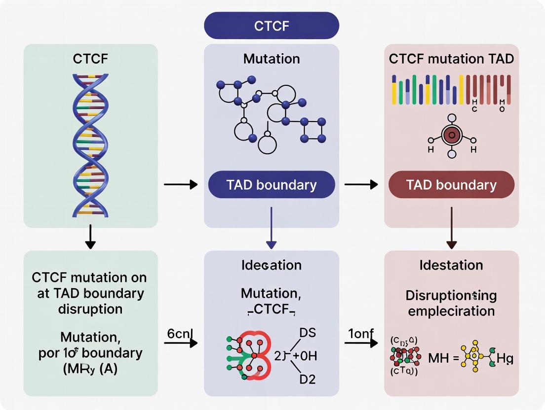 This article provides a comprehensive analysis for researchers and drug development professionals on the impact of CTCF mutations on Topologically Associating Domain (TAD) boundary integrity. We first establish the foundational role of CTCF as the 'master weaver' of 3D genome architecture, detailing how point mutations, deletions, and structural variants compromise TAD boundaries. We then explore cutting-edge methodologies—including Hi-C, CUT&RUN, and CRISPR-based perturbation assays—for detecting and modeling this disruption. A dedicated section addresses common technical challenges in data interpretation and experimental optimization. Finally, we present a comparative framework for validating causality, assessing mutation severity across cancers and neurodevelopmental disorders, and evaluating emerging therapeutic strategies aimed at correcting or exploiting disrupted 3D chromatin architecture. This synthesis aims to bridge mechanistic insight with translational applications in biomedicine.