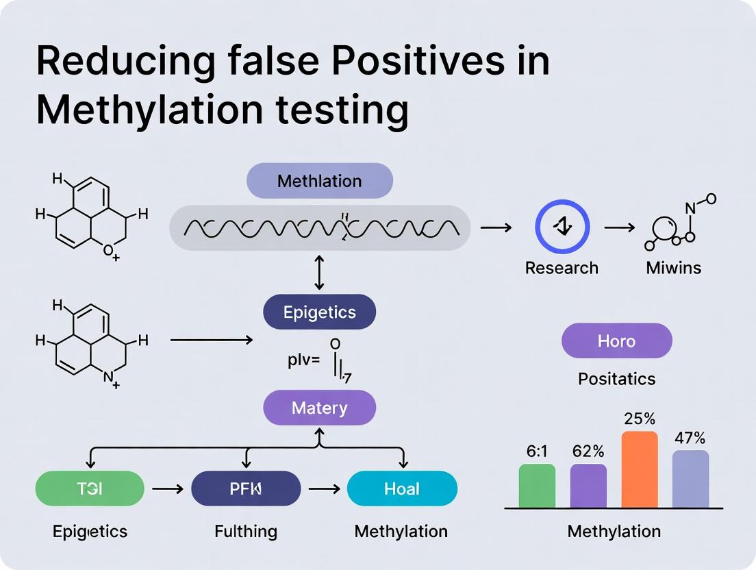 Reducing false positives in methylation testing is not a single-step fix but requires a holistic strategy spanning experimental design, wet-lab precision, sophisticated bioinformatics, and rigorous validation. By understanding the multifaceted sources of error and implementing the layered filtering and optimization techniques outlined, researchers can significantly enhance data fidelity. This precision is paramount for identifying robust epigenetic biomarkers, understanding disease mechanisms, and advancing drug development programs. Future progress hinges on the development of more specific chemical conversion methods, integrated computational tools that unify genetic and epigenetic data, and the establishment of standardized validation frameworks to ensure that methylation-based discoveries are both reproducible and translatable to clinical impact.